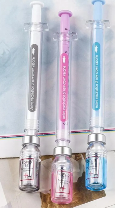 Add a dose of fun to your writing! This vaccine-shaped pen is a creative and eye-catching accessory designed to look like a miniature syringe — but don’t worry, it’s completely safe and ink-filled only
