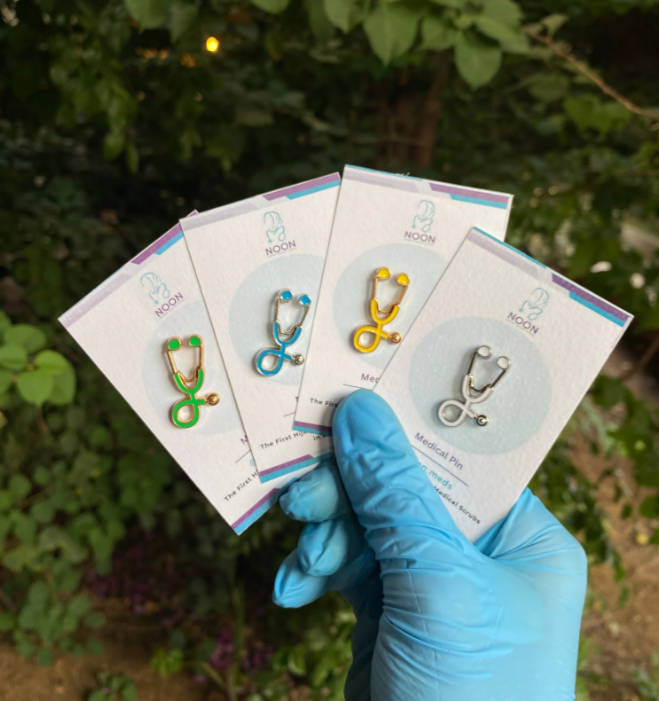 Buy 2 scrubs and get free pins with each purchase
